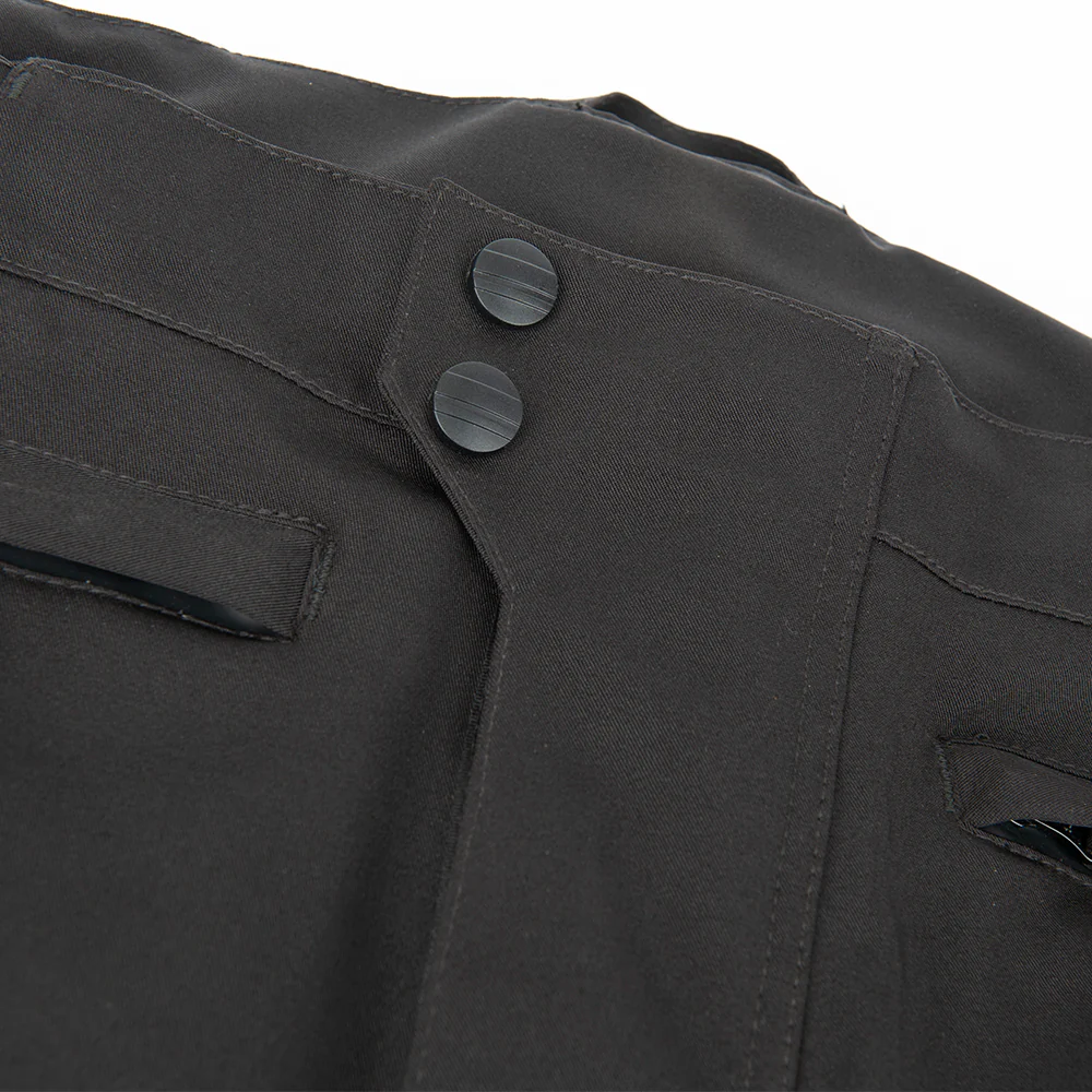 El pantalón textil impermeable Alter Ego™ 15.0 está fabricado con una capa exterior impermeable y transpirable Rock Flex™ 900, con elasticidad en 4 direcciones que permite un mejor ajuste y un movimiento menos restrictivo. Para mayor protección, hemos reforzado las caderas y rodillas con paneles Rock Tex™ 1000 e incluido protectores de rodilla removibles y ajustables en altura, aprobados por Vault™ Web C.E.